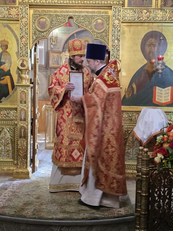В завершение соборного Богослужения Владыка Алексий вручил Благодарственные грамоты во внимание к усердным трудам на благо Святой Церкви клирикам и сотрудникам храмов Юго-Западного викариатства, отмечающих памятные даты в 2025 году: