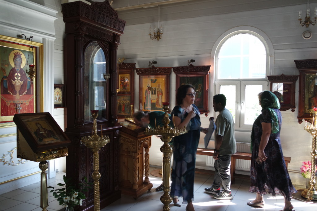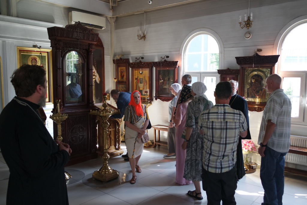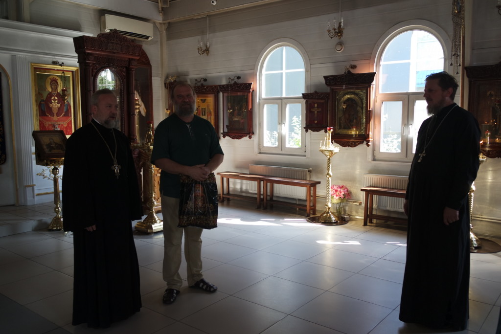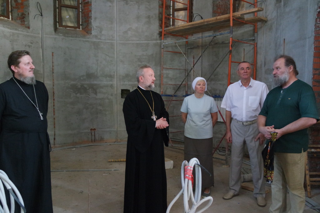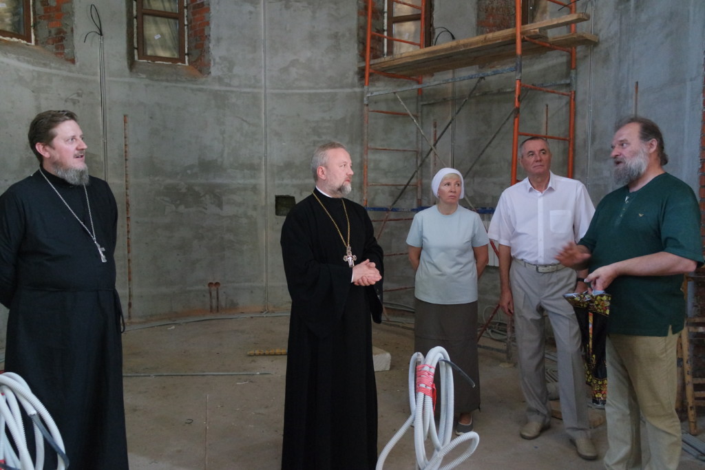 Затем участники прошли в строящийся храм, где осмотрели внутренние работы. Также было определено совместно устроить икону Спасителя в белом хитоне в алтаре на Горнем месте.
