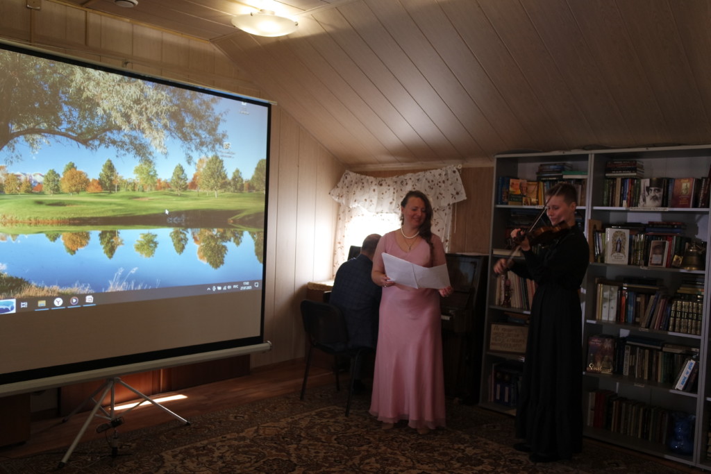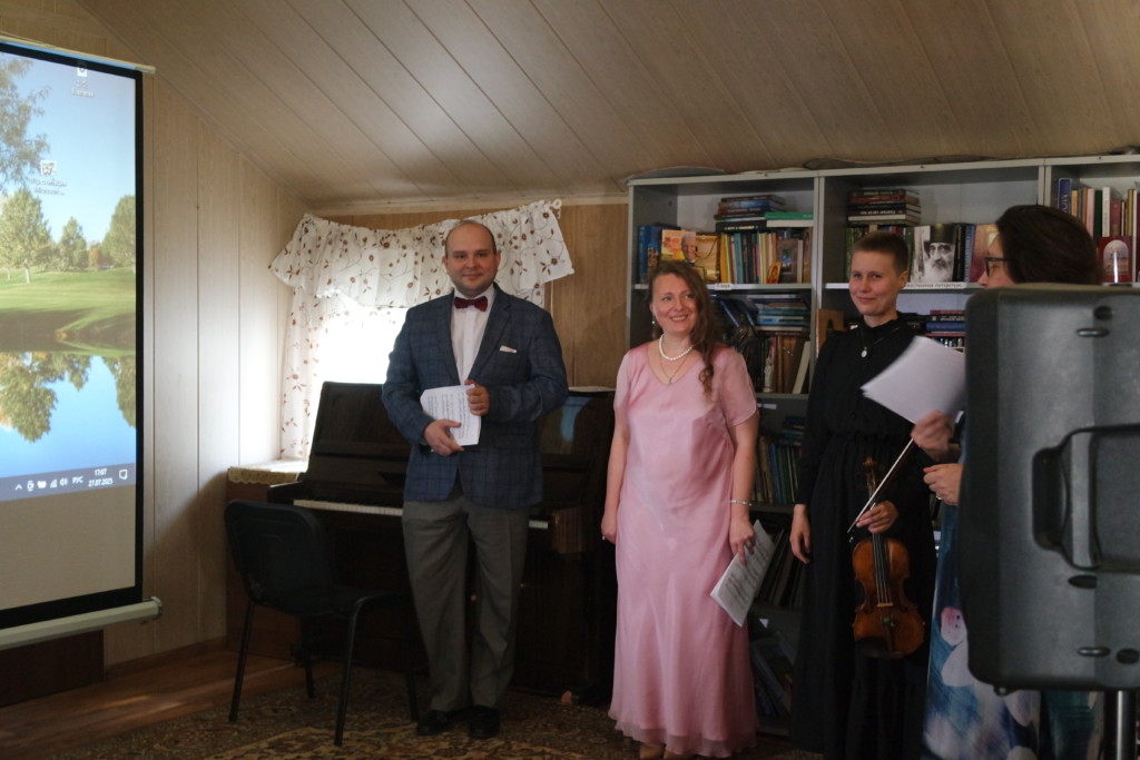 Творческий вечер начался в храме с общей молитвы святому священномученику Серафиму. В храме настоятель храма священник Максим Глухих поздравил Левушкина Владимира Анатольевича — члена общества памяти священномученика Серафима Чичагова с наступающим днем тезоименитства, подарив от храма икону Божией Матери «Неупиваемая Чаша» и книгу Бутовская земля, с подписью автора и краеведа Нины Токановой, прихожанки храма.