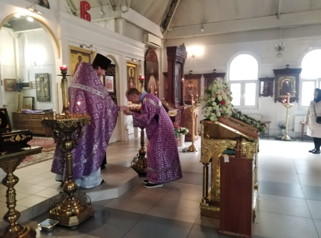 03 октября 2025 г., в пятницу Седмицы 17-й по Пятидесятнице, в день памяти мучеников и исповедников Михаила, князя Черниговского и болярина его Феодора, чудотворцев (1245), преподобного и благоверного князя Олега Брянского (ок. 1285), Собора Брянских святых, в храме священномученика Серафима, митрополита Петроградского в Южном Бутове было совершено уставное Богослужение.