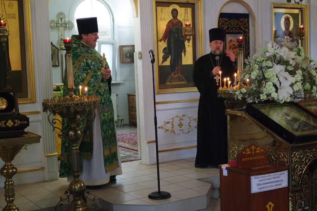 После Богослужения настоятель храма иерей Максим Глухих обратился к прихожанам с проповедью и поздравил иерея Сергия с днем тезоименитства.