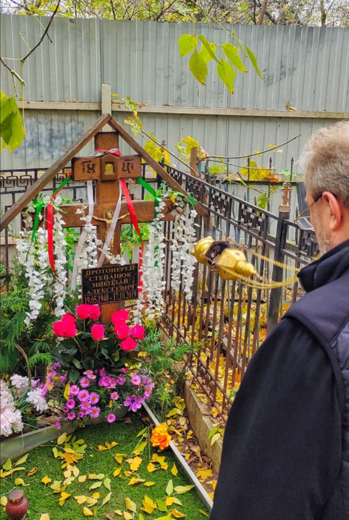 Настоятель храма совершил панихиду на кладбище о упокоении протоиерея Николая Степанюка, ключаря Богоявленского Кафедрального собора г. Москвы.