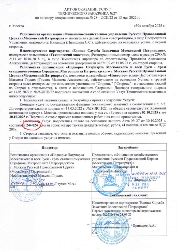 Дорогие друзья, в очередной раз обращаюсь к Вам за помощью в оплате работы Техзаказчика ЕСЗ МП по строительству храма. Пришло выполнение работ от Генподрядчика.