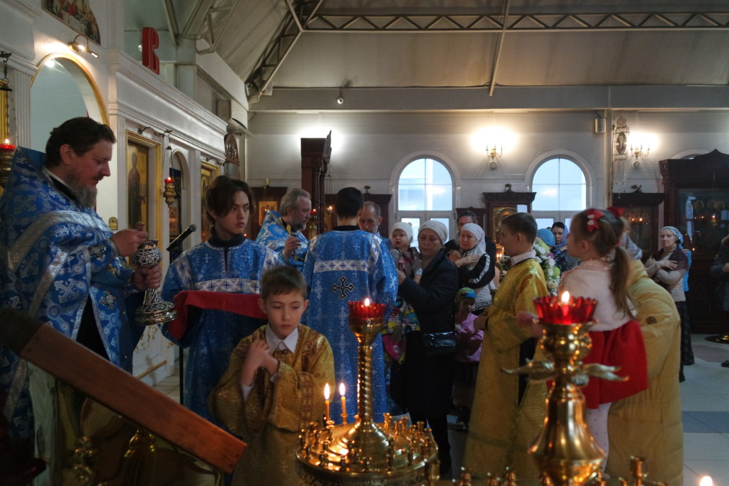Затем настоятель произнес проповедь, поздравил прихожан праздником.
