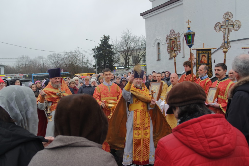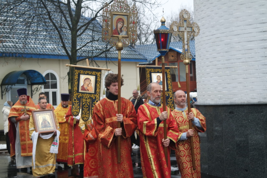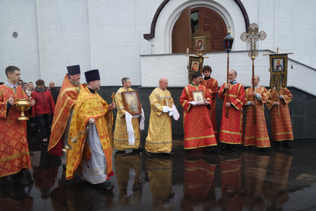 По окончании Божественной Литургии был совершен Крестный ход вокруг нового храма. Затем в новом храме настоятель совершил молебен священномученику Серафиму, славление празднику. Впервые под сводами храма прозвучали песнопения молебна. Это было радостное, трогательное и запоминающееся событие для прихожан и строителей храма.