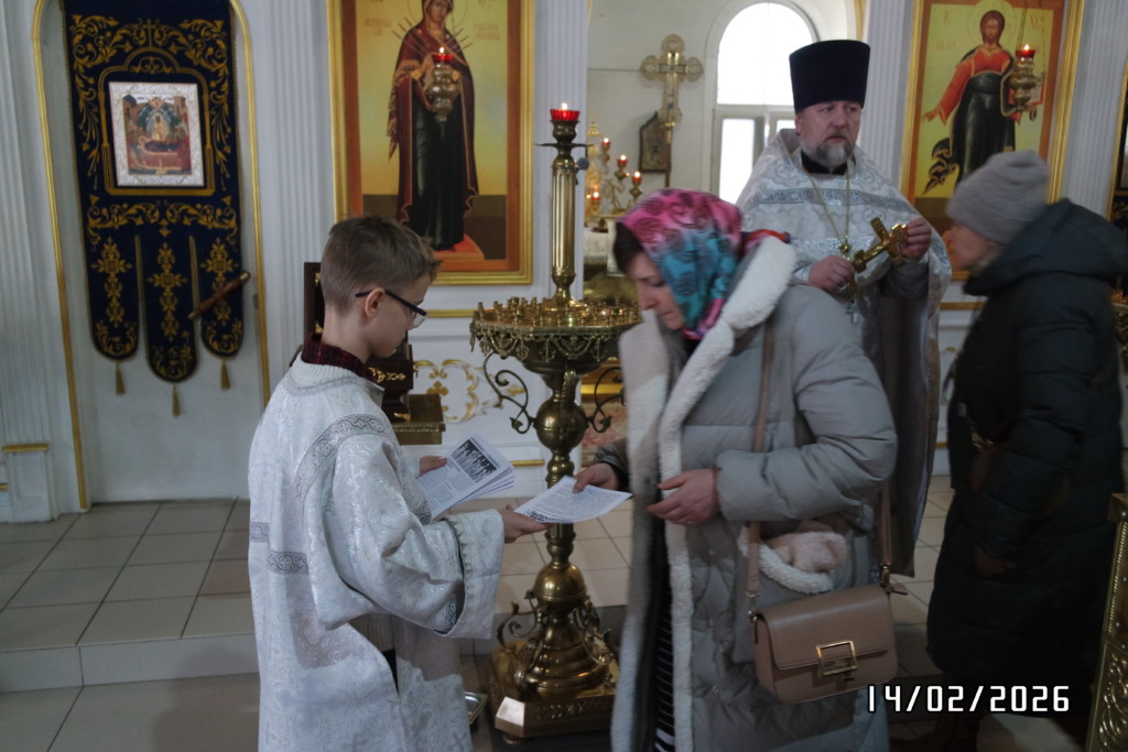 14 февраля 2026 года, в субботу Вселенскую родительскую (мясопустную), поминовение усопших, предпразднство Сретения Господня, в храме Священномученика Серафима, митрополита Петроградского в Южном Бутове г. Москвы было отслужено уставное заупокойное Богослужение.