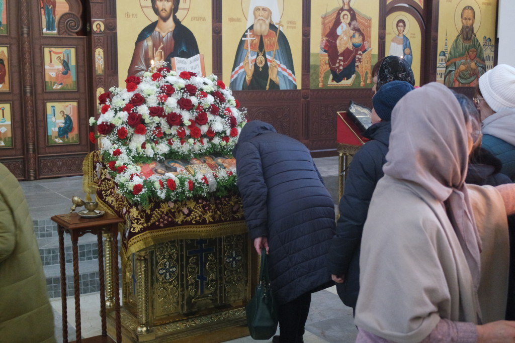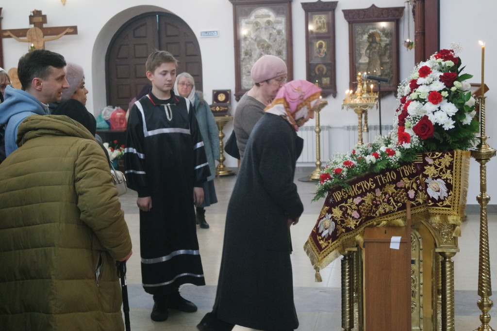 Затем молящиеся могли приложиться к Святой Плащанице с изображением погребения Христа.
