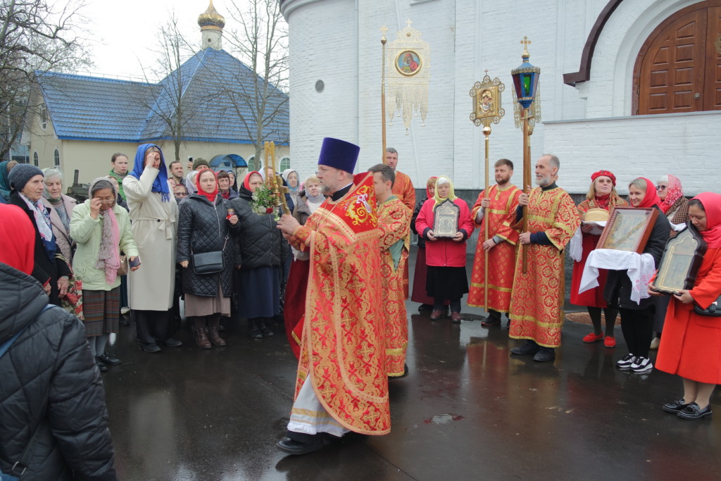 По окончании Литургии был совершен чин малого освящения воды и Пасхальный Крестный ход вокруг храма.