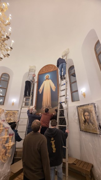 21 декабря 2025 года после богослужения во временном храме иконы Божией Матери «Неупиваемая Чаша», активные прихожане храма обустроили алтарь нового храма в честь священномученика Серафима, чтобы установить икону Спасителя в белом хитоне в киоте понадобилось 4 часа подготовки и 10 человек прихожан, другие собратья перенесли в новый храм напольные киоты с иконами и установили их там. Также после были установлены колонки для трансляции Богослужений в храме. Жены мироносицы храма в это время убирали храм и вымывали полы от строительной пыли. Работы начались после утреннего Богослужения в храме, а закончились вечером. Благодарим дорогих прихожан, которые пришли помочь, результат общих трудов был потрясающим, мы вместе, с молитвой и Божией Помощью смогли соделать все, что наметили, и даже больше! В уборке храма и помощи, также участвовал молодежный актив храма и наши дорогие детки из Воскресной школы. Спаси Вас Господь!