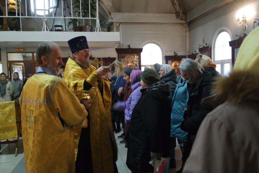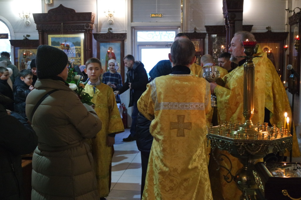 По окончании Литургии иерей Максим Глухих обратился к участникам богослужения с проповедью. Затем были совершены молебны.