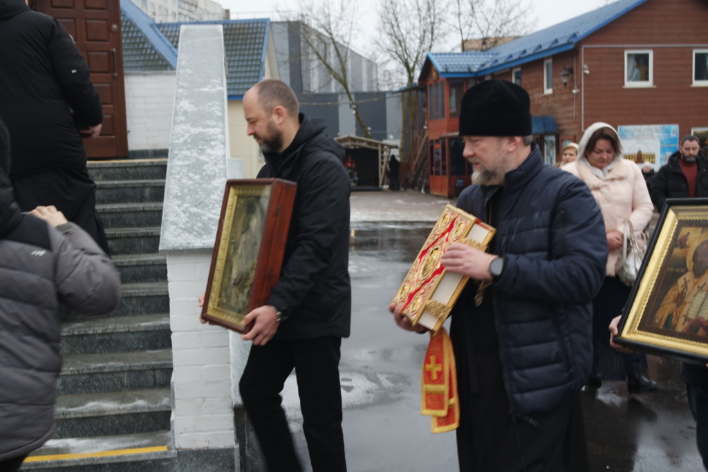 21 декабря 2025 года, в Неделю 28-ю по Пятидесятнице, в храм священномученика Серафима, митрополита Петроградского в Южном Бутове г. Москвы были доставлены иконы Спасителя, Божией Матери Иверская, святителя Николая Чудотворца и напрестольное Евангелие.
