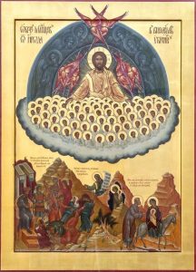 «Еще молимся Тебе, Господу Спасителю нашему, о еже прияти молитвы нас недостойных рабов Твоих в сию годину испытания, пришедшую на Русь Святую, обышедше бо обыдоша ю врази, и о еже явити спасение Твое. Рцем вси, Господи, услыши и помилуй.